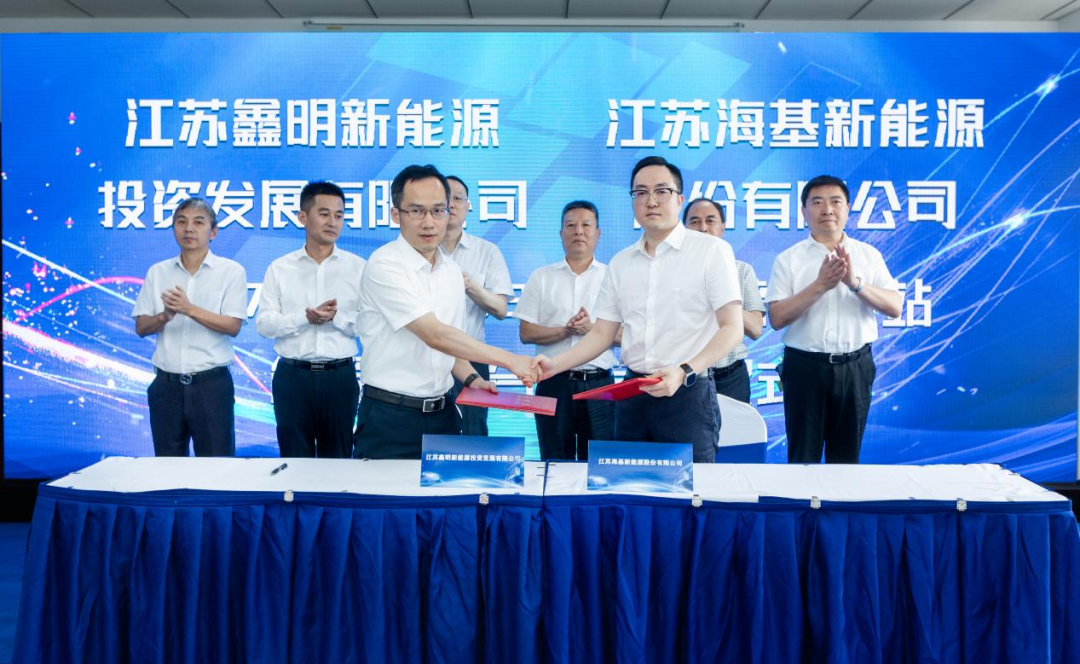 2023年8月3日,江蘇海基新能源股份有限公司與無錫市市政公用產業集團下屬江蘇鑫明新能源投資發展有限公司、國網無錫綜合能源服務有限公司簽署戰略合作協議,與江蘇鑫明新能源投資發展有限公司簽署5.17MW/10.32MWh儲能電站項目能源管理合同并舉行簽約儀式。市政集團黨委書記、董事局主席王國新、國網無錫供電公司總經理完善、江蘇百川高科新材料股份有限公司董事長鄭鐵江、江蘇?;履茉垂煞萦邢薰径麻L鄭淵博等領導出席簽約儀式。